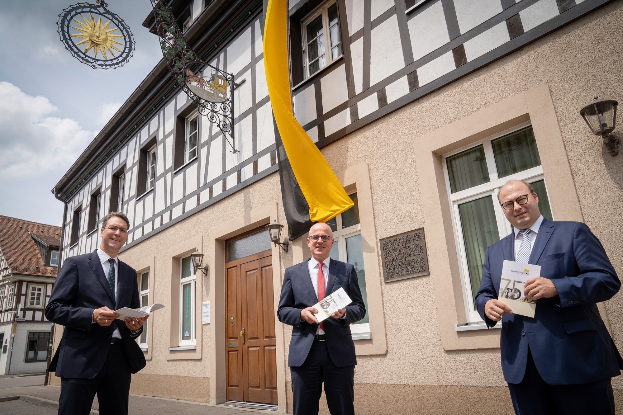 „Im Sommer 1945, unmittelbar nach dem Zweiten Weltkrieg, waren die Landkreise, Städte und Gemeinden die einzige staatliche Ebene, die noch wenigstens halbwegs funktioniert hat“, betonte der Hauptgeschäftsführer des Landkreistages Baden-Württemberg, Prof. Dr. Alexis von Komorowski, der anlässlich des 75-jährigen Jubiläums mit dem Landrat des Rems-Murr-Kreises, Dr. Richard Sigel, und dem Bürgermeister von Murrhardt, Armin Mößner, am historischen Tagungsort in Murrhardt zusammenkam. „Die Landräte hatten seinerzeit die Aufgabe, sich unter widrigsten Umständen um die Lösung der Alltagsprobleme der Menschen zu kümmern“, erläuterte von Komorowski. Darunter fiel neben der Unterbringung von Flüchtlingen und Heimatvertriebenen insbesondere die Versorgung der Bevölkerung mit lebensnotwendigen Gütern. „Kommunen als pragmatische Problemlöser – dies ist seit den unmittelbaren Nachkriegstagen und bis heute ein wesentlicher Erfolgsfaktor für unser demokratisches Gemeinwesen“, hob Landkreistags-Geschäftsführer von Komorowski hervor.